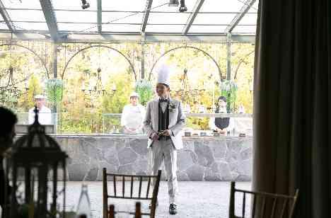 ゲスト様と過ごす時間を大切されていたご新郎新婦様でした。プロ並みの腕前をもつご友人がマジック披露されたり、受付で撮影したお写真を使ってプレゼント抽選を行ったりとご参列された全員と接することのできるようなパーティーでした。ジョージアンテラスのオリジナルパフォーマンスでもあるシェフズダイニングがスタートする際には新郎様もシェフに紛れてスタンバイし、フランベの合図をする大役を務めてくださいました。