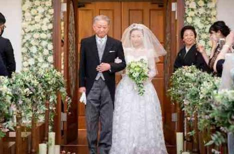新婦様のお母様がご結婚された際に新婦様のおばあ様が作られたウェディングドレスを受け継ぎ、親子二代で同じウェディングドレスをお召しになられ、大切な挙式のお時間をお過ごしいただきました。娘様を想って手作りされた思いや、長きに渡り大切に保管されていた想いが、色褪せることなく思い出させるような素敵なドレスに身を包まれ、ヴァージンロードを歩まれました。