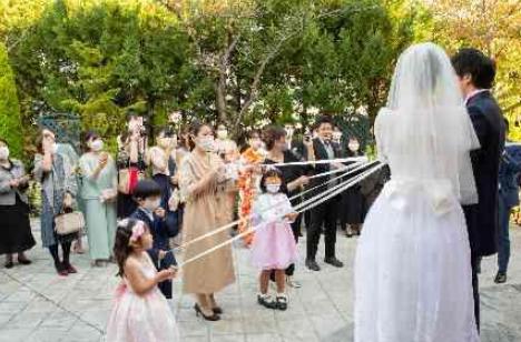 アフターセレモニーではブーケプルズをアレンジしたゴムパッチンセレモニーを実施!ゲスト様参加型の盛り上がる演出となりました。披露宴では友人スピーチをアレンジして、サプライズインタビューを!少しアレンジを加えるだけでもオリジナリティ溢れるパーティでおもてなしが出来ますよ♪