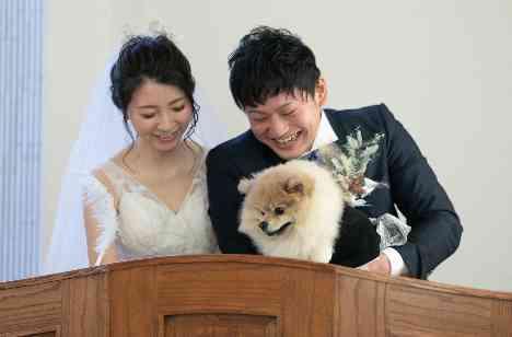 おふたりの愛犬にたくさん登場してもらったお式となりました。わんちゃんの登場もゲストにはサプライズということで、ギリギリまでお式の参加は分からないようにし、リングドッグでのサプライズ登場!おふたりの大切な結婚証明書には立会人として愛犬からの肉球スタンプも押して皆様にご披露!終始和やかでアットホームな挙式となりました。