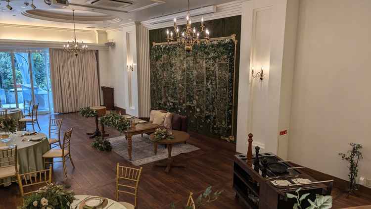 イギリスの邸宅のような雰囲気で、全体的に可愛らしくまとまり感のある会場で、木目の雰囲気がとても温かみがあって良かったです。