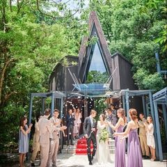 【人気の森の教会を体感!】緑に囲まれた教会は天窓から美しい自然光が差し込み、赤いバージンロードで新婦様を引き立たせる。感動の挙式シーンを是非体感してみて!