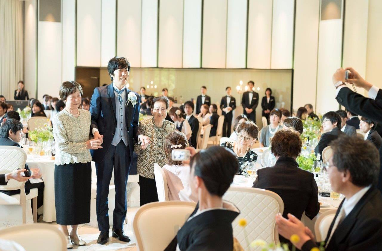 こだわったのは衣裳だけでなく、ケーキや新郎様の蝶ネクタイなどセンスが感じられるものばかりでした。 披露宴では、テーブルインタビューやご友人の方による映像やダンスと、ゲストからのたくさんのお祝いの気持ちが届き、お色直し退場ではお母様やおばあ様と歩くことで、ご家族とのシーンもつくり、ご親族・ご友人皆様の祝福のお気持ちが溢れるパーティとなりました。
