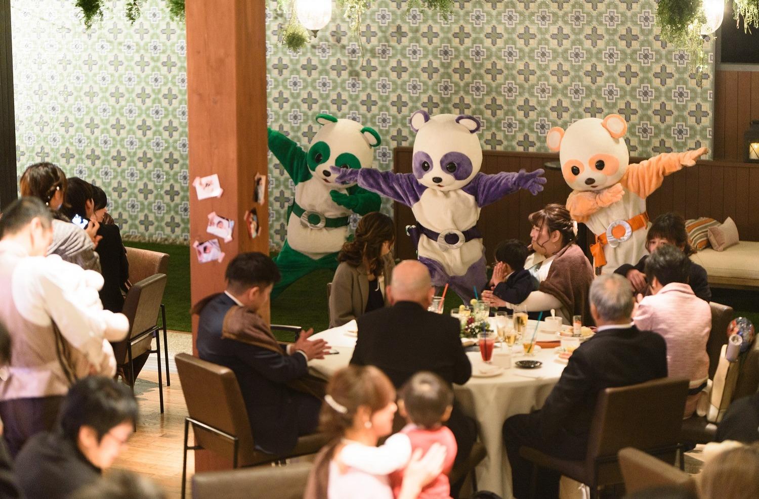 ご新婦様の元職場の方のご余興は、本格的なぬいぐるみショー。お子様も多いパーティでとても盛り上がりました