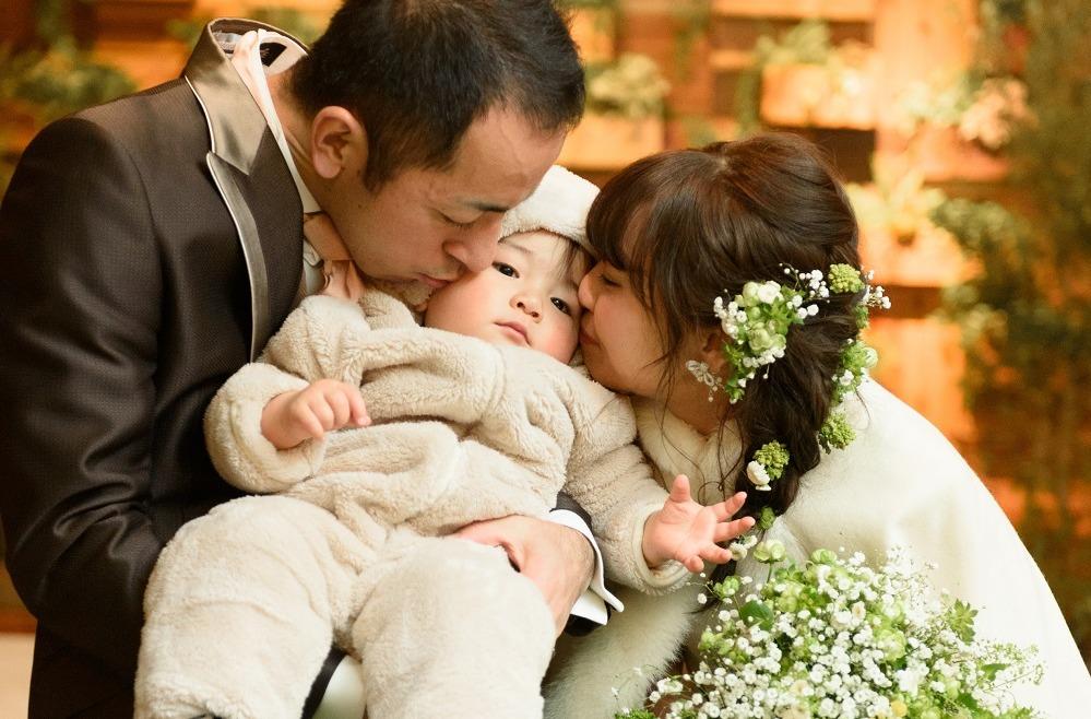 ご親族様との会食の後に、挙式と友人も交えたパーティと、二部制のウェディングで丸々一日会場を貸し切ってのご結婚式。沢山の方とゆっくりとお話が出来、はるくんを紹介することができたのも、この二部制ウェディングならでは!