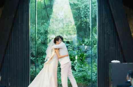 挙式は新郎様の大好きな曲「The Book of Love」で入場♪入場シーンからとても感動的に。 通常であれば、誓いの印として行う「キス」ですが、おふたりらしく「ハグ」をする事に!とても和やかで温かな挙式シーンとなりました。 自然光が降り注ぐ迎賓館のチャペルだからこそ、よりナチュラルなおふたりらしさが感じられます。