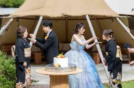 終始笑顔な新郎新婦様とリラックスして会話を楽しむゲストの様子は、アットホームなパーティーでした。おふたりの周りには、たくさんの笑顔とシャッターチャンスが溢れていました。ご家族への感謝を込めて、お色直し退場では、たいせつなご家族にエスコート役をお願いし退場。そして、ウェディングケーキのセレモニーでは、 おふたりからお母様へのサンクスバイトが行われ会場全体が温かい拍手に包まれました。