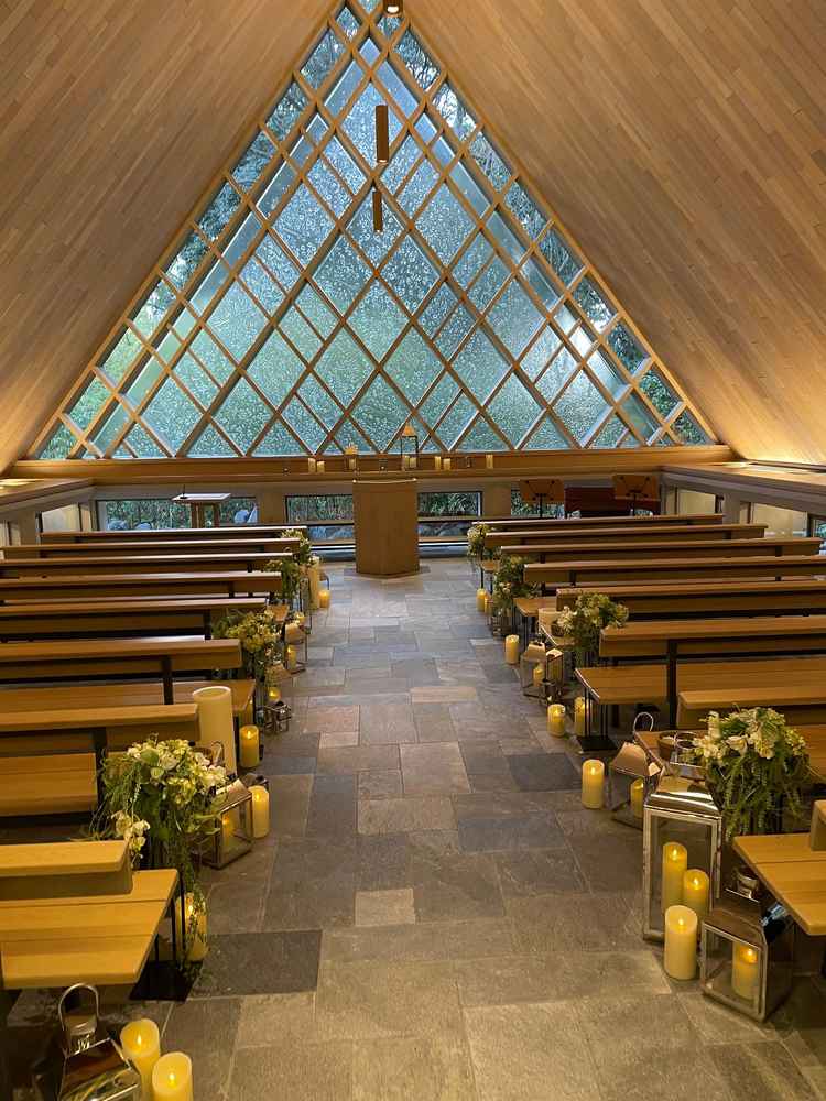 設備の説明は詳しく受けていないが、ゲストがウェイティングルームまでの通る道に写真を置けたりなど独立チャペル感を味わえるかと思った。