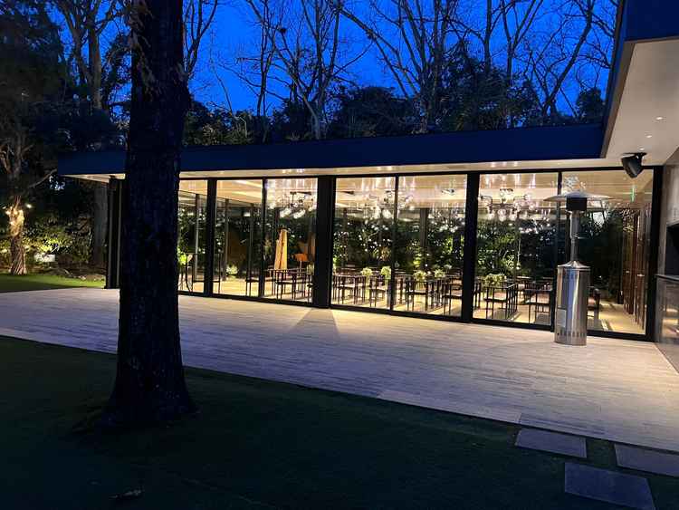 庭だけでなく、茶室などの建物もあり、よかったです。披露宴会場に関しても、ガラス張りの後ろに池と緑が一面に見える作りで、とてもきれいでした。