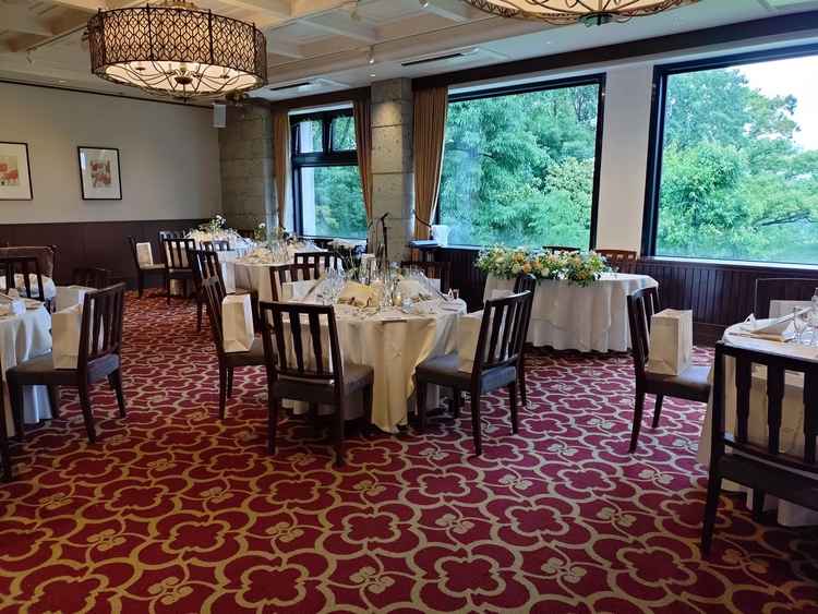 少人数用の披露宴会場がある点がありがたく、窓からは緑が見えるので狭さは感じない雰囲気でした。オープンキッチンの披露宴会場もあり、熱々の料理を提供してくれる点がいいなと思いました。
