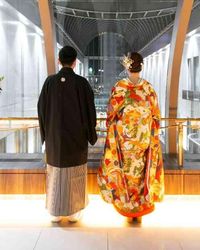 - 館内にあるにも関わらず、日本古来のゆかしい神前式を叶えていただける本格神殿。参列されるご親族にも不便がないよう、すぐお隣にスタジオを設けています。衣装については白無垢はもちろん、色打掛も多くの種類をご用意してますので、衣装選びもきっと楽しみにお越しいただけますよ!