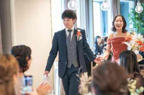 披露宴に向けお色直しされたおふたりは、ケーキ入刀やファーストバイト、ご友人様からのスピーチ、カラードレスの色当てクイズなど、皆さまと楽しく過ごせるようなパーティ演出をたくさんご用意。 今日のために集まってくれたゲストとの写真撮影や歓談のお時間もあり、おふたりのおうちにゲストを招くような、ゆったりと過ごすアットホームなパーティタイムになったのではないでしょうか。