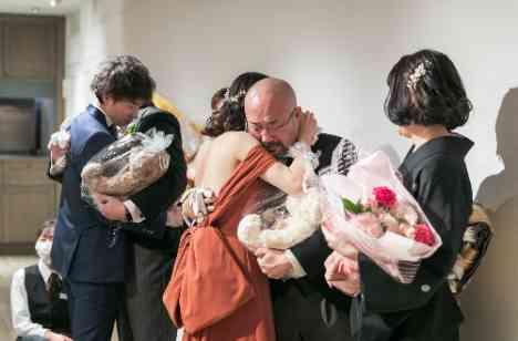 挙式前に迎えたのは「ファミリーミート」のお時間。親御様を先にチャペルへのご案内し、おふたりに背を向けてその瞬間お待ちいただきます。 おふたりは親御様の元へゆっくりと歩みを進めながら、これまでの思い出を心の中で振り返ります。普段のようにお声掛けいただき、振り返り親御様の表情におふたりの頬には涙が。 今日までの感謝を伝える日だからこそ、親御様と向き合うことが出来る素敵な瞬間となりました。