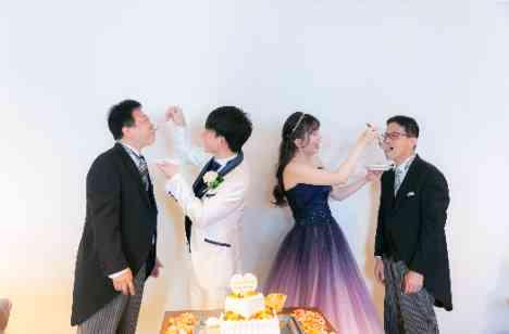 挙式とは雰囲気をがらりと変え、グラデーションカラーが大人な雰囲気を演出するカラードレス姿。ふたりが主役になるのではなく、集まってくれた皆様と一緒に楽しい時間を過ごすために、一人一人と会話がしっかり出来るよう歓談の時間を多めに取りました。 親御様へのサンクスバイトはおふたりのご希望。ケーキの大きさは『愛情の大きさ』と言われており、口いっぱいにケーキを頬張るお父様の姿が微笑ましいですね。