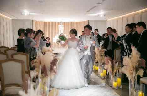 当初はお召しいただくご予定ではなかったカラードレス。 ご準備を進めていく内に新婦様の中に芽生えた、 「やっぱりお色直しをしたい」という想いを打ち明けてくださいました。 装いを新たに登場されたおふたりに、ゲスト様の盛り上がりも最高潮!高らかな拍手とともに、カメラを構えたゲスト様。シャッターを押す指が止まりません♪