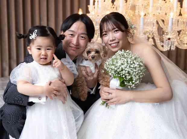 結婚式に先がけて行われた前撮りでは、 リラックスしたおふたりとお子様の表情を撮影。 自然体で過ごされる時間の中で、無邪気に笑うお子様の様子や、傍に座るわんちゃんの姿を、しっかりと大切に写真へおさめさせていただきました。 前撮りで紡がれた時間があったからこそ、 当日の一瞬一瞬が、より深くより特別なものに__。 ご家族様で迎える結婚式へのカウントダウンが始まりました。