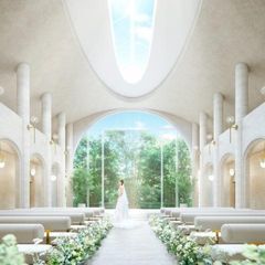 【26年9月リニューアルOPEN】緑と光あふれる純白のチャペルが一新。チャペルで過ごす感動のセレモニーや入場を体験できる!先輩カップルの映像上映会など結婚式当日をイメージしていただけます。