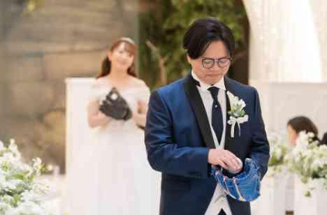 楽天イーグルスの大ファンのご新郎ご新婦様です。人前式を選んでいただいたので、何か野球に関係するセレモニーが出来ないかと思い、誓いの言葉をキャッチボールで行うことにしました。挙式当日はご親族様だけでなく、ご友人の皆様にも、すごく喜んでいただき、とても盛り上がりのある、おふたりらしいオリジナリティ溢れる挙式となりました。