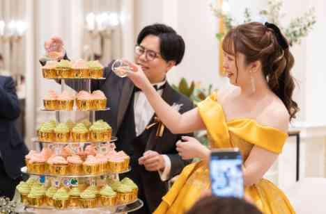 ご新婦様のお好きなカラースプレーをケーキにかけたいとご希望をいただき、ウェディングケーキではなく、カップケーキにカラースプレーを振りかけるセレモニーを行いました。ご両家親御様による、お手本バイトも行わせていただき、家族・親子愛が感じられる温かいセレモニーとなりました。ゲストの方からも珍しい進行を見て、絶賛のお声をいただきました。