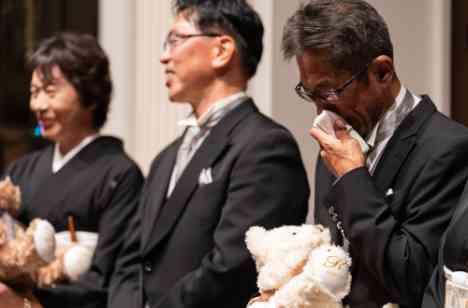 ウェイトベアをお母様ではなく、あえてお父様にお渡しをしました。ご新婦様が生まれた際、海外に出張に行っており、生まれた時の体重で抱っこしたことがないお話を伺っていましたので、ご贈呈のタイミングでお父様にお渡しをすることを提案しました。ウェイトベアを抱いた瞬間、お父様から涙が溢れ出し、感動的な温かいセレモニーとなりました。