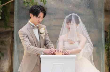 ご新郎様が一度、当館に参列されたことがあり、その時の経験から人前式をお選びになられました。ゲスト参加型で一緒に創り上げていく挙式をイメージして当日を迎えました。実際には、ゲストに1つずつピースをはめていただく結婚証明書の作成とリングリレーを行いました。イメージしていた通りのゲスト参加型で、一緒に創り上げられていくアットホームな時間になりました。