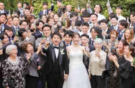 新郎新婦様の出会いは高校の体育館でした。同級生だったため共通の友人も多く、皆が笑っている姿を見たいという要望がありました。そのため、ゲスト参加型で皆を巻き込める演出を一緒に考えました。 披露宴前に皆でガーデンで乾杯を行い、その後の披露宴もとてもアットホームにお過ごしいただけました。 ご友人様からご親族様まで一体となってお楽しみいただけました。
