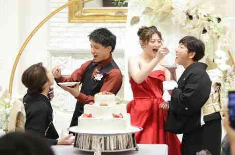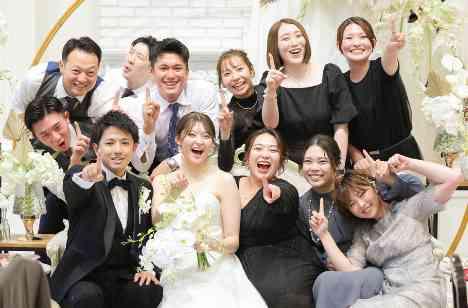 新郎新婦様の出会いは高校の体育館でした。同級生だったため共通の友人も多く、皆が笑っている姿を見たいという要望がありました。そのため、ゲスト参加型で皆を巻き込める演出を一緒に考えました。 披露宴前に皆でガーデンで乾杯を行い、その後の披露宴もとてもアットホームにお過ごしいただけました。 ご友人様からご親族様まで一体となってお楽しみいただけました。