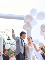 挙式後はすぐ隣のガーデンテラスでアフターセレモニーが叶う。みなとみらいの絶景を望む、海風が心地よいテラスでの時間はゲストにも喜ばれるおもてなしに。幸せのカリヨンベルの音が響きわたるなか、バールンリリースやフラワーシャワーなど、ゲストと一緒に笑顔溢れる幸せな時間を楽しもう。