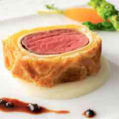 オニオンクリームスープ白トリュフの香り/牧草牛フィレ肉のパイ包み焼き《ウェリントン》ポートワインソース