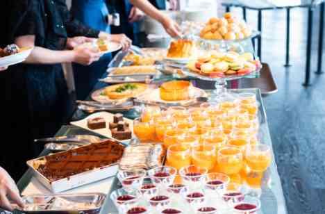 おふたりはお打ち合わせからお料理に関わるおもてなしを大切に、心もお腹も満たしてほしいと考えていました。披露宴会場の中でも景色が見え、明るい室内テラスにてデザートビュッフェを行いました。参列をされたゲストの皆様もおふたりとお写真を撮ったりデザートも楽しんだりとアットホームな空間になり大満足のようでした。