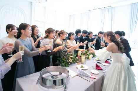 ゲストとの距離は近く近くにし皆さまが寄ってきてくださるような距離感に!乾杯の挨拶をきっかけに皆さまおふたりのもとに駆け寄ってくださり、たくさんお話しとお写真を撮る時間を創りました。ご新婦様のそばに来て涙をされるおじい様おばあ様や、ご新郎様を囲むご友人の方、そんなおふたりらしい自由な時間を過ごしました。 おふたりの記憶にも、ゲストの記憶にも記録にも残る素敵な時間となりました。