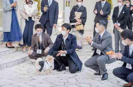 大切な家族の一員であるわんちゃんが中心の結婚式をご希望のおふたりには、わんちゃんが誰のところに進むかゲスト全員で予想をする参加型ゲームをご提案いたしました。 ゲスト全員がしっかりご覧いただけるよう広いガーデンを使用して行いました。 完全貸し切りの会場だからこそ叶えることが出来る大切な家族との結婚式です。
