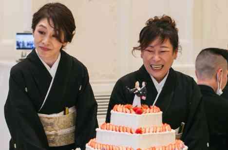 結婚式では王道なケーキセレモニー 当日サプライズでのお願いでしたが、両家お母様にお手伝い頂き、最高な表情でメイン扉からご登場でセレモニースタート! サプライズでのご登場で、ゲストの皆様も驚きながらたくさんの拍手でお迎えされました。 結びにはおふたりへのお祝いコメントを頂き、ケーキ入刀・ファーストバイトへと進みました。