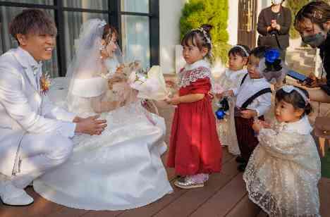 新郎お母さまから「子供たちからふたりにサプライズをしたい」とご希望をいただき、ガーデンセレモニーの際にサプライズをしていただくことになりました。 かわいらしいお子様たちに合わせて、1人1本ずつお花を二人にプレゼントされました。かわいい演出におふたりの周りはとても温かい空間に包まれまれ、周りのゲストの皆様も拍手で祝福されました。