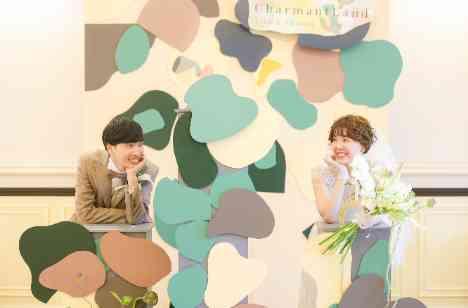 おふたりの結婚式のテーマは「テーマパークに来たようにワクワクして欲しい!」でした。 入口に入ってすぐはゲストにも張り付けてもらうフォトスポットをご用意。 挙式までの間にゲストの皆様にバラバラの形のシールを張り付けていただきました。 朝見たときは何も貼っていなかったフォトスポットは完成するまでどんな雰囲気になるかわからない! 挙式後には完成したフォトスポットの前で写真撮影も行いました!