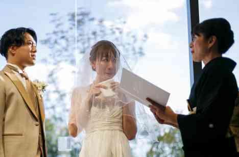 我が子の成長を願い見守ってきた大好きなお母様からの誓いの言葉。ご新婦お母様からご新郎様に向けて、そしてご新郎お母様からはご新婦様へ問いかけて頂きました。 今まで聞いたこともなかった我が子への想いを聞いたおふたりはもちろん、会場にいた全員が感動し涙を流しました。アーククラブ迎賓館のチャペルは木の温もりに溢れた宗教色のないチャペルなので人前式がオススメです!