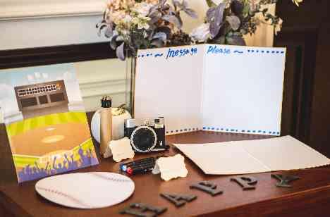ゲスト参加型の結婚式 ロビーにはおふたりに向けたメッセージを書いてもらう為、メッセージブースを設けました。 おふたりからの想いを伝えるだけではなく、ゲストの皆様からも祝福のメッセージをお伝えいただきました。