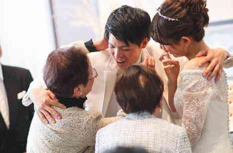 大好きなおばあさまを中座の相手にお選びになりました。呼ばれることを想像もしていなかったおばあさま方は涙を流しながらおふたりのもとに駆け寄りました。 おふたりからおばあさまへお気持ちを伝えて頂き、手を固く握って一緒に退場しました。 ゲストの皆様も涙を流しながら中座の様子をご覧になり、会場全体が温かい素敵な空間となりました。