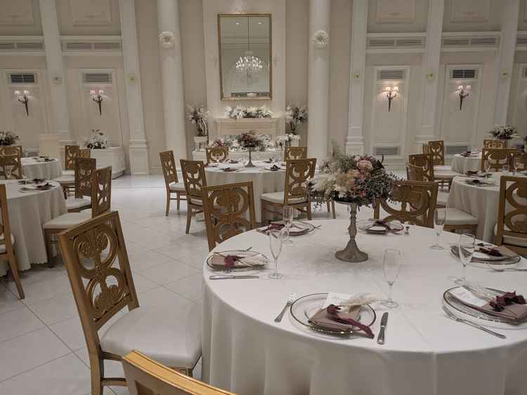 宮殿のような豪華な施設で、バルーンリリースなどもできるテラスもあり、色々カスタマイズして楽しい結婚式にできそうだと感じた。