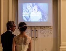 新郎新婦目線で披露宴会場への入場体験が可能。ゲストの目線や照明演出を確認できるので、本番の流れを具体的にイメージできます。演出重視の方にもおすすめの体験コンテンツです。