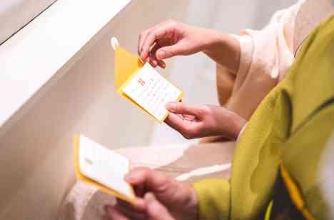 挙式はおふたりらしさが演出できる人前式。お越しいただく皆さまへの感謝の気持ちがたくさんあり、一人一人にしっかり気持ちを伝えたい、そんな想いから挙式のスタートはみなさまへの手紙を読んでいただくお時間にしました。手紙はロビーのフォトスポットに飾り、ゲストの方に自分のお手紙を探していただきました。みなさまワクワクしながら探す様子も素敵でした。
