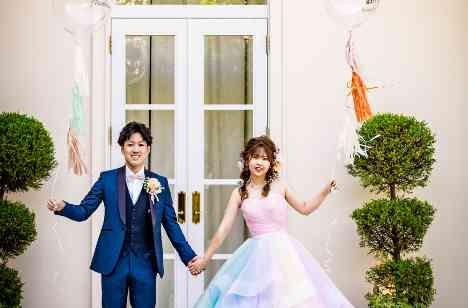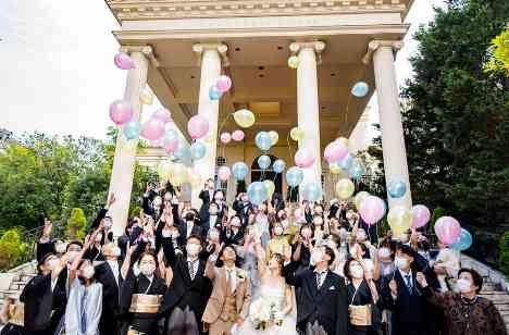 おふたりの幸せを願って、ゲストの皆様全員大階段でバルーンリリースを行いました!! バルーンのカラーもパステルカラーで統一感をもたせ、天気も良く晴れた青空へバルーンが飛んでいくシーンはとても素敵でした。 ゲストの皆様と一体感を感じられ、祝福の気持ちや幸せいっぱいなお気持ちが溢れる時間になりました。
