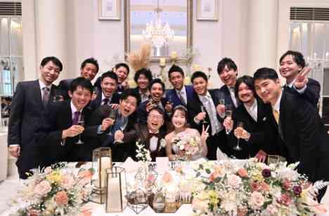 披露宴中、気づけばお2人の周りにはご友人たちが集まってお2人を囲みながら楽しそうにご歓談されている様子でした。お2人とお打合せ中に、堅苦しく自由に立ち回れない結婚式よりは、皆が自由に盛り上がり立ち上がって楽しめるような雰囲気にしたいとご希望がありました。お2人のお人柄のおかげで当日は皆様お2人と沢山絡み一緒にお酒を飲んだり、写真撮影をしたりと各々自由に楽しんでおられました。