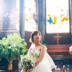 【花嫁の憧れを叶える本格大聖堂】200年以上の時を越えて歴史を刻み続けるステンドグラスが圧巻。永遠を愛を誓う場として、これ以上ない厳かな雰囲気が漂います。思わず見上げてしまう18mの天井高も好評です。