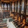 【花嫁の憧れを叶える本格大聖堂】200年以上の時を越えて歴史を刻み続けるステンドグラスが圧巻。永遠を愛を誓う場として、これ以上ない厳かな雰囲気が漂います。思わず見上げてしまう18mの天井高も好評です。