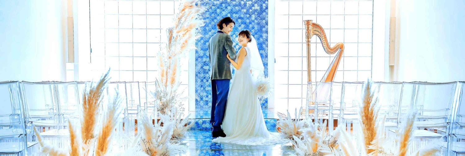 - ハープの音色が響き渡る中、華やかなブルーローズに彩られた透明感溢れるチャペルで感動的な挙式を。