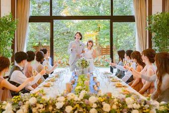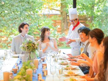 ゲスト同士の仲を深めやすく、距離も近いから、一人ひとりに感謝の気持ちを伝えられる。空と緑が包み込むプライベート感たっぷりの一日が過ごせる。大きな窓から優しく射し込む光と豊かな自然を感じながら、ゲストと会話を楽しむ穏やかな時間を。