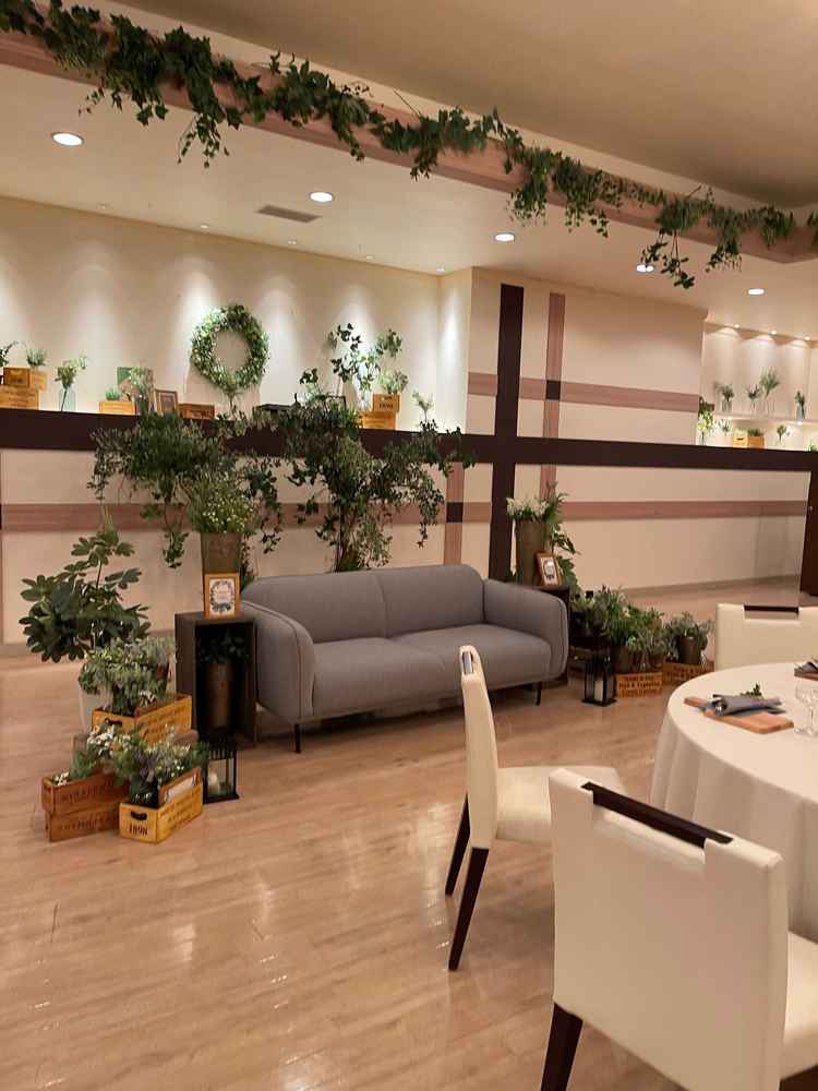 披露宴会場、待合室、式場といいとてもよい世界観だった。扉や置物など細かい所まで世界感があり良かった。雨の日に少しだけ慣れるところが残念。