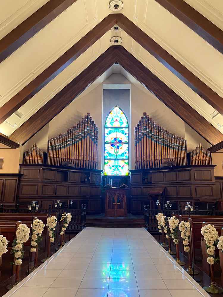 大聖堂のステンドグラスは一度必見!雨天や梅雨時期でも式を行える場所