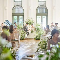 白で統一された空間に木漏れ日を思わせる柔らかな光が降り注ぎナチュラルな優しさで満たされる教会。ぜひふたりだけの特別な空間で憧れの花嫁体験を味わってみて
